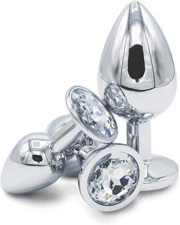Adequado para iniciantes, 3 peças/set - Light Blue Heart Diamond Trainer Kit AN07 plug anal feminino grande.