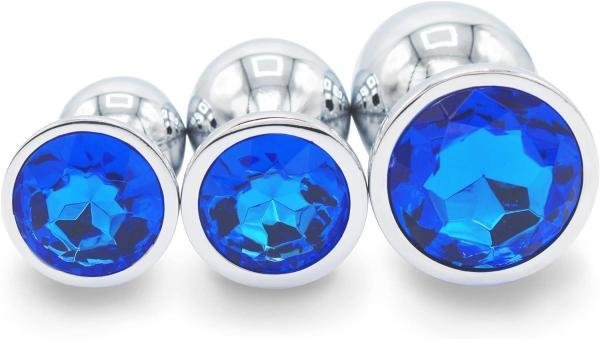 Adequado para iniciantes, 3 peças/set - Light Blue Heart Diamond Trainer Kit AN07 plug anal feminino grande.